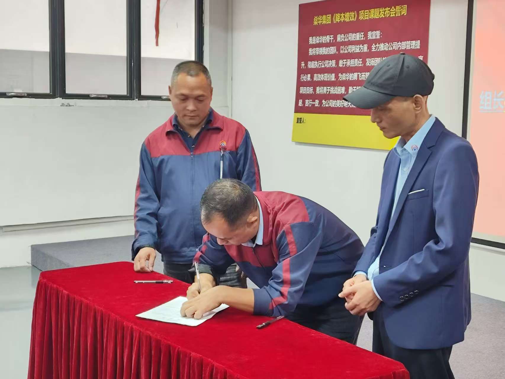 至此,項目從決策到執(zhí)行的組織體系全面建立,權(quán)責(zé)清晰,重任在肩。 三、承諾于心,擔當于行 在目標承諾環(huán)節(jié),各改善小組負責(zé)人依次上臺,鄭重簽署課題目標承諾書。每一筆簽名,不僅代表對目標的公開承諾,更承載著對成果的責(zé)任與擔當,展現(xiàn)出團隊使命必達的決心。